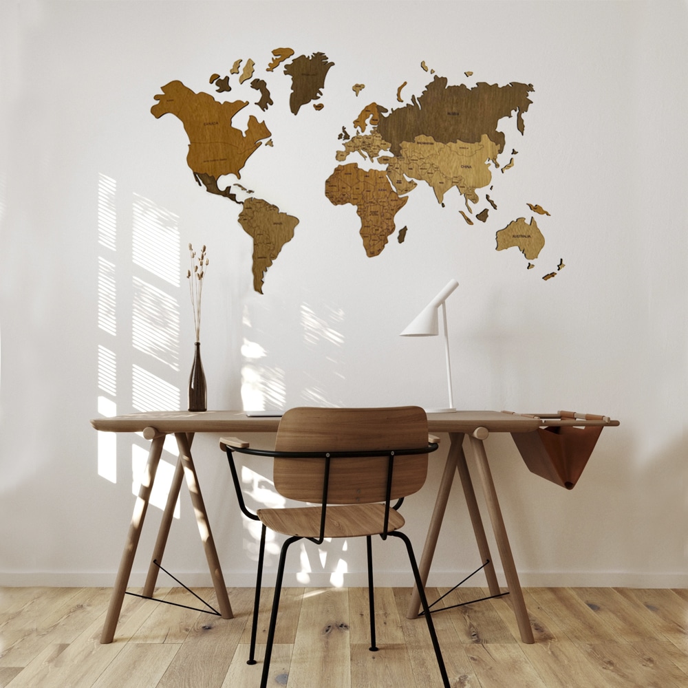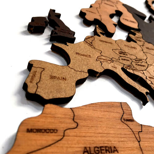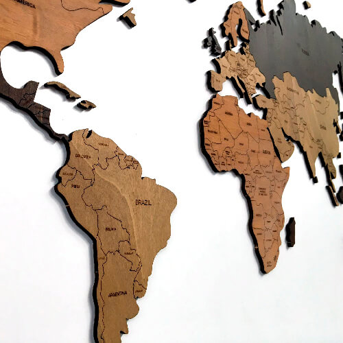 Mapamundi de madera para decorar tus interiores o tu oficina.
